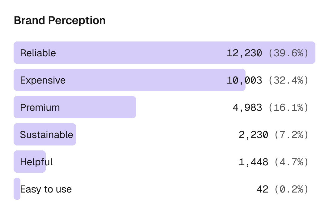 Discover the brand attributes that AI uses to describe you and your competitors.